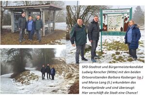 Beim Themenspaziergang der Geiselhöringer SPD anfangs der Woche stellten Stadtrat und Bürgermeisterkandidat Ludwig Kerscher und die beiden Ortsvorsitzenden Barbara Kasberger und Marco Lang zentrale Punkte des Wahlprogramms der Geiselhöringer SPD vor.
