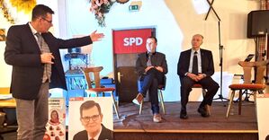 Landratskandidat Oskar Saller (li.) moderierte gekonnt die Diskussion zwischen dem SPD-Fraktionsvorsitzenden im Kreistag Martin Kreutz (Mitte) und Generalmajor a.D. Norbert Wagner (re.) – zwei leere Stühle blieben für die Vertreter des Klinikums bzw. der Chefärzte